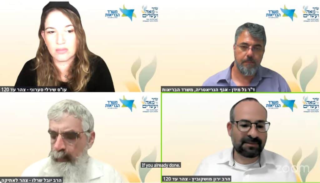 מפגש מקוון של צהר עד 120. המפגש כלל הדרכה מעשית למילוי המסמך ע"י ד"ר גל מידן, מאגף הגריאטריה במשרד הבריאות, סקירה הלכתית והמלצות צהר עד 120 שניתנה ע"י הרב יובל שרלו, וכלי תקשורת ושיח רגשי למילוי המסמך והתנהלות משפחתית מפי עו"ס שירלי סערוני.